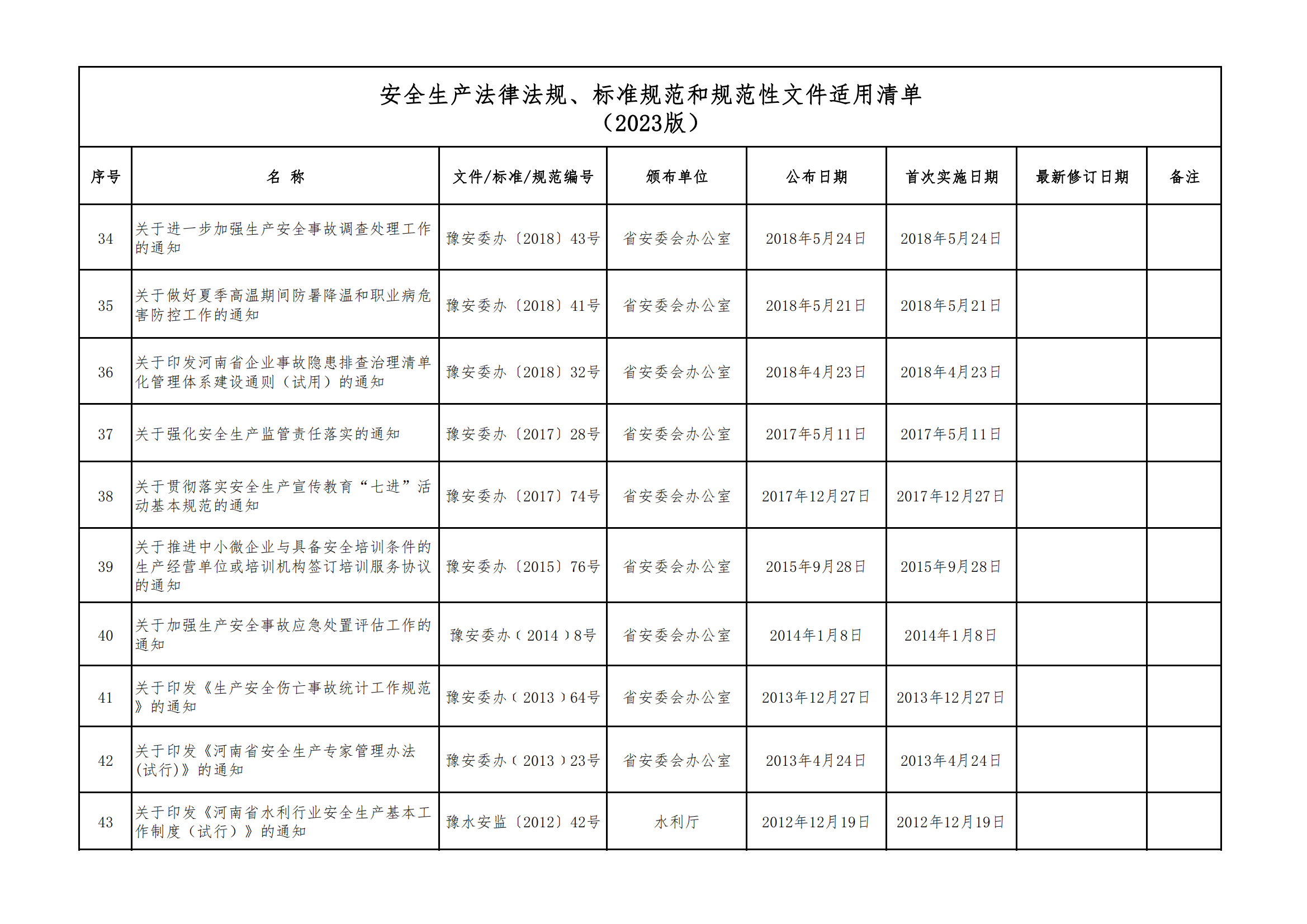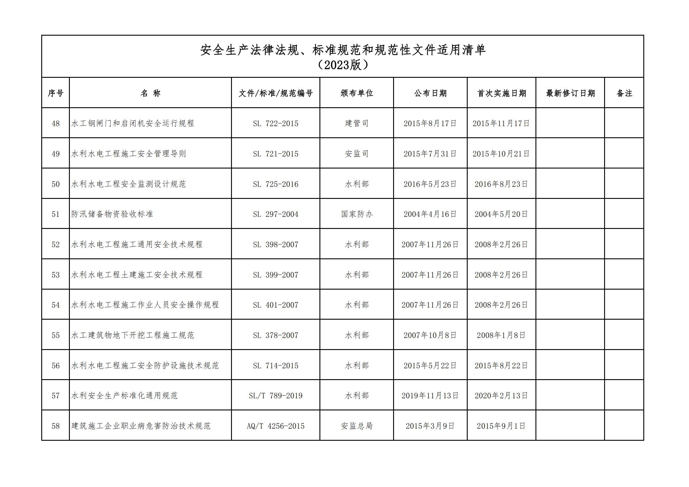 安全生產(chǎn)法律法規(guī)、標(biāo)準(zhǔn)規(guī)范和規(guī)范性文件適用清單