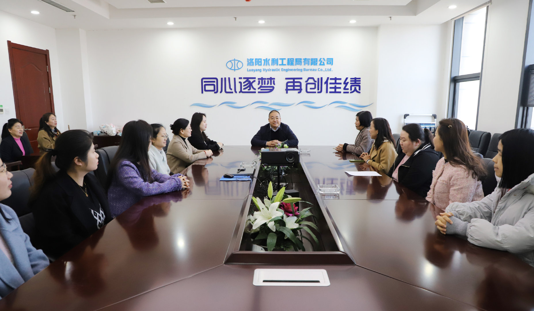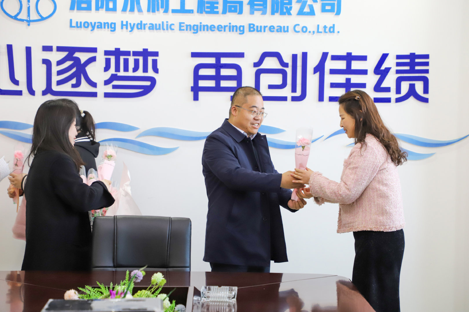 陽春三月春意濃,人面桃花相映紅,第114個“三八”婦女節(jié)如期而至,為充分調動女職工工作積極性、主動性和創(chuàng)造性,增強女職工的向心力和凝聚力,3月8日上午,集團公司李東坤等領導到中共洛陽水利工程局有限公司委員會(以下簡稱“公司黨委”)為女職工送上鮮花和節(jié)日美好祝福。