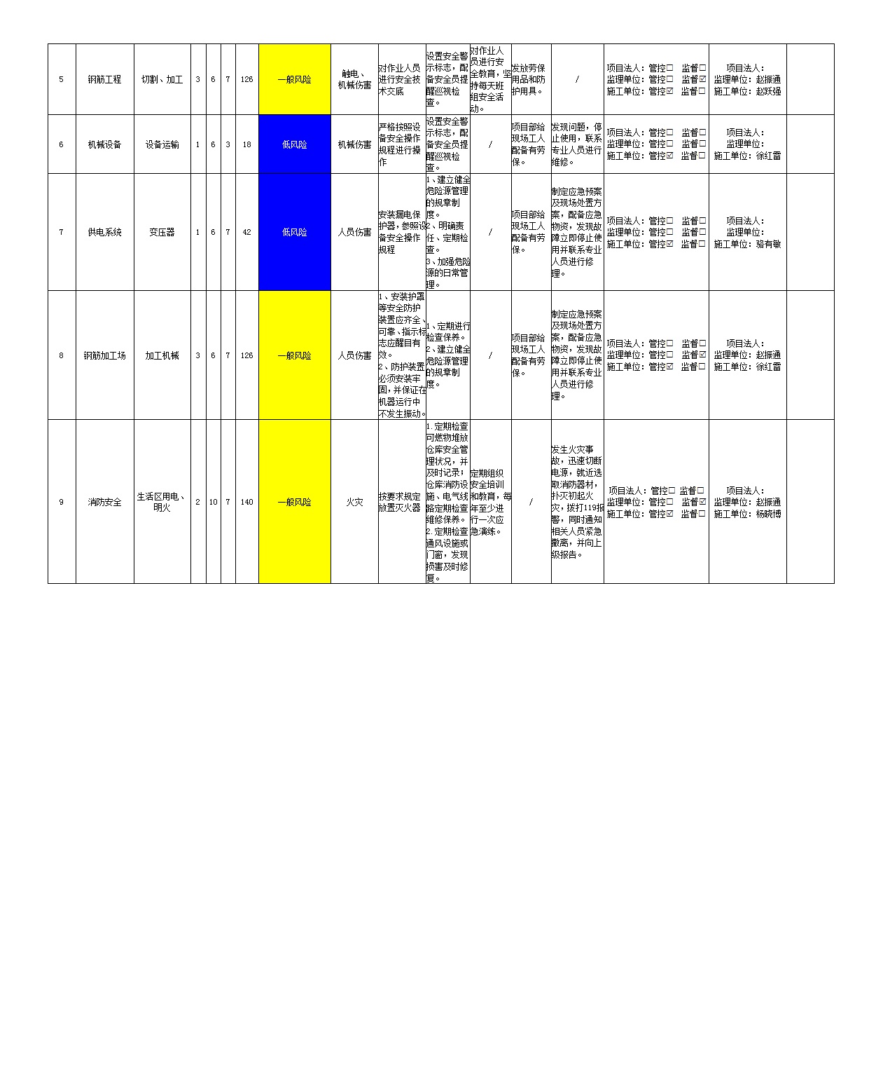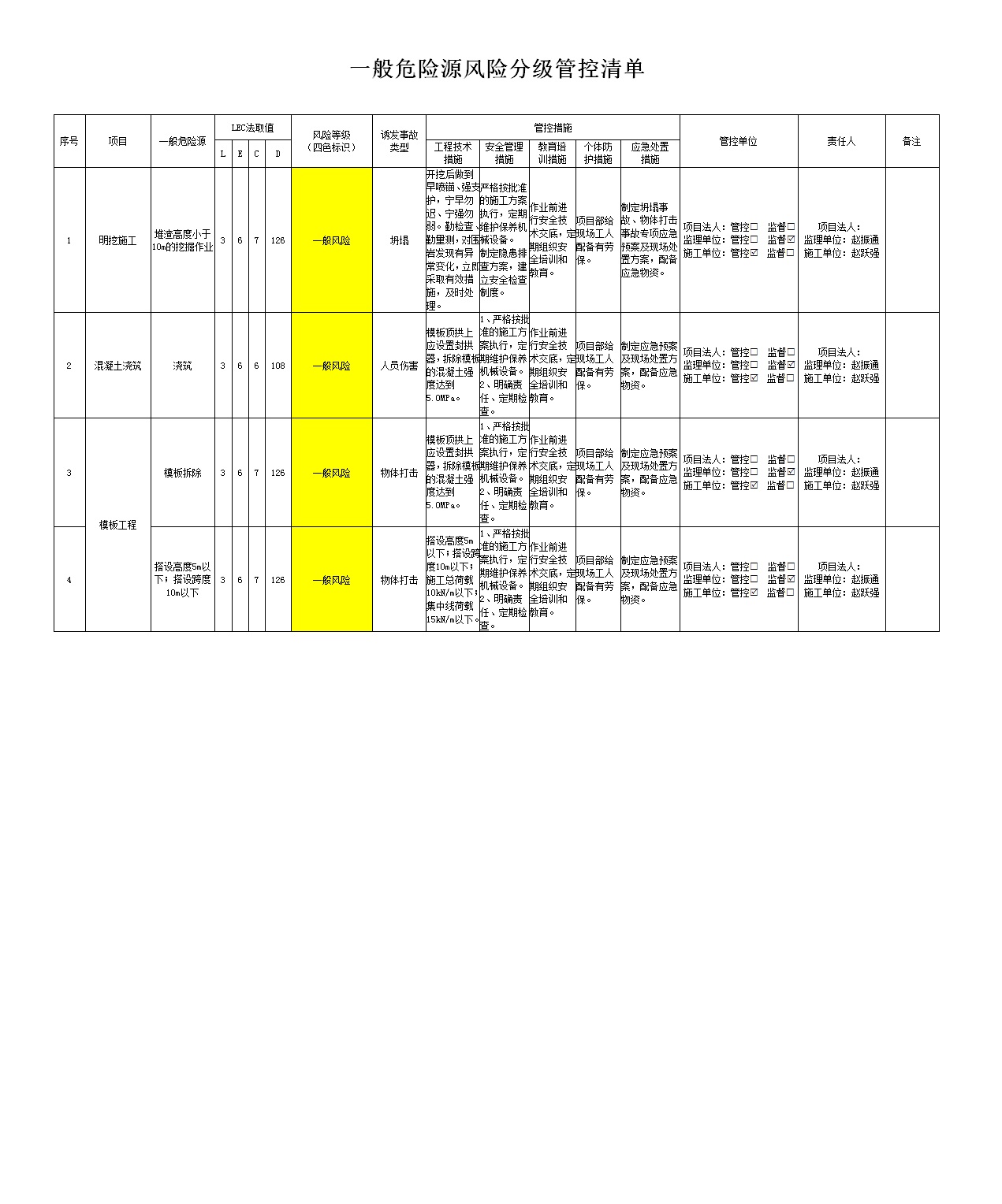 2024年一季度在建項(xiàng)目安全風(fēng)險(xiǎn)分級管控清單(小浪底南岸灌區(qū)工程施工7標(biāo))