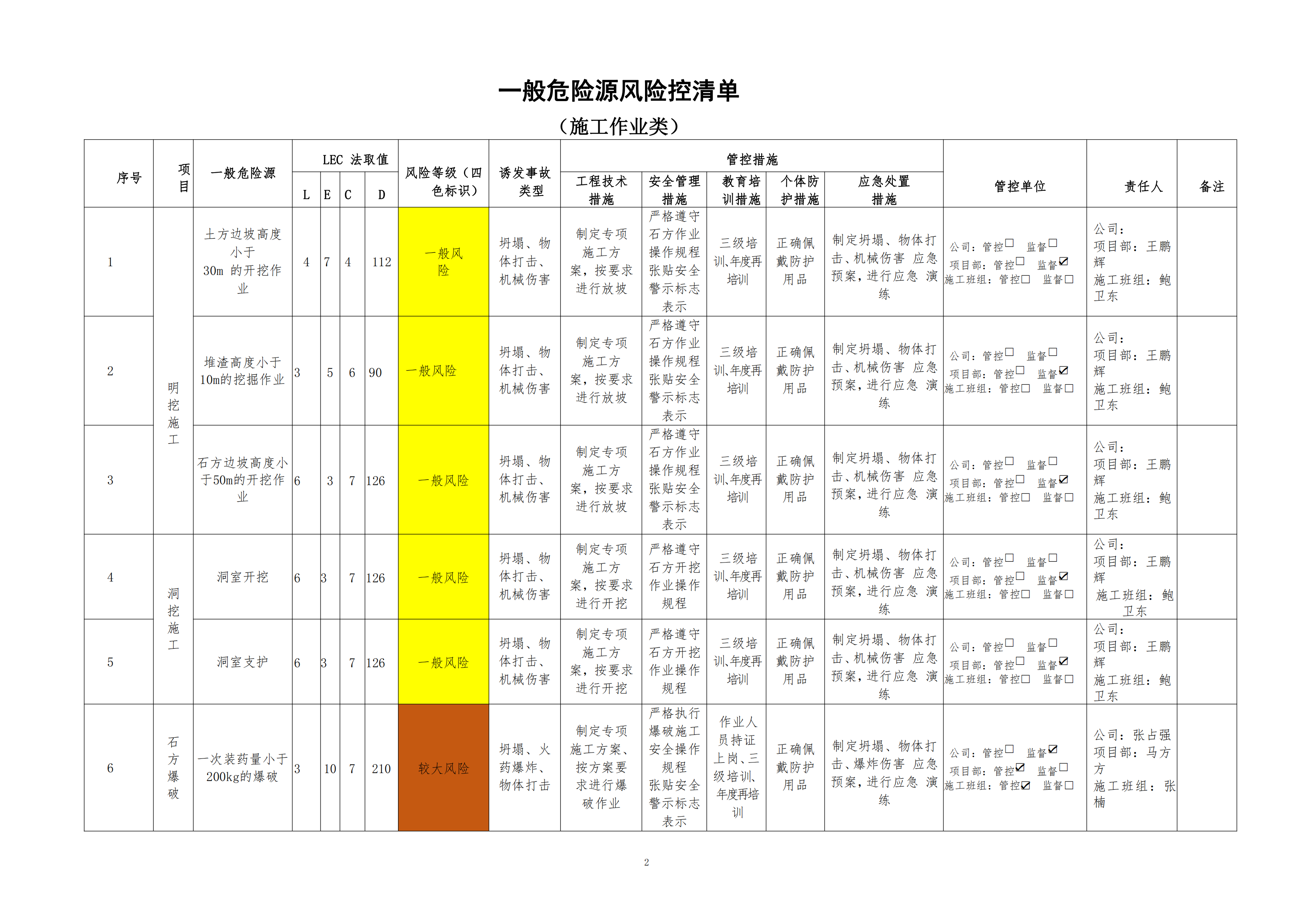 欒川縣新建水庫一期工程施工一標(biāo)段危險源風(fēng)險分級管控清單(6月)