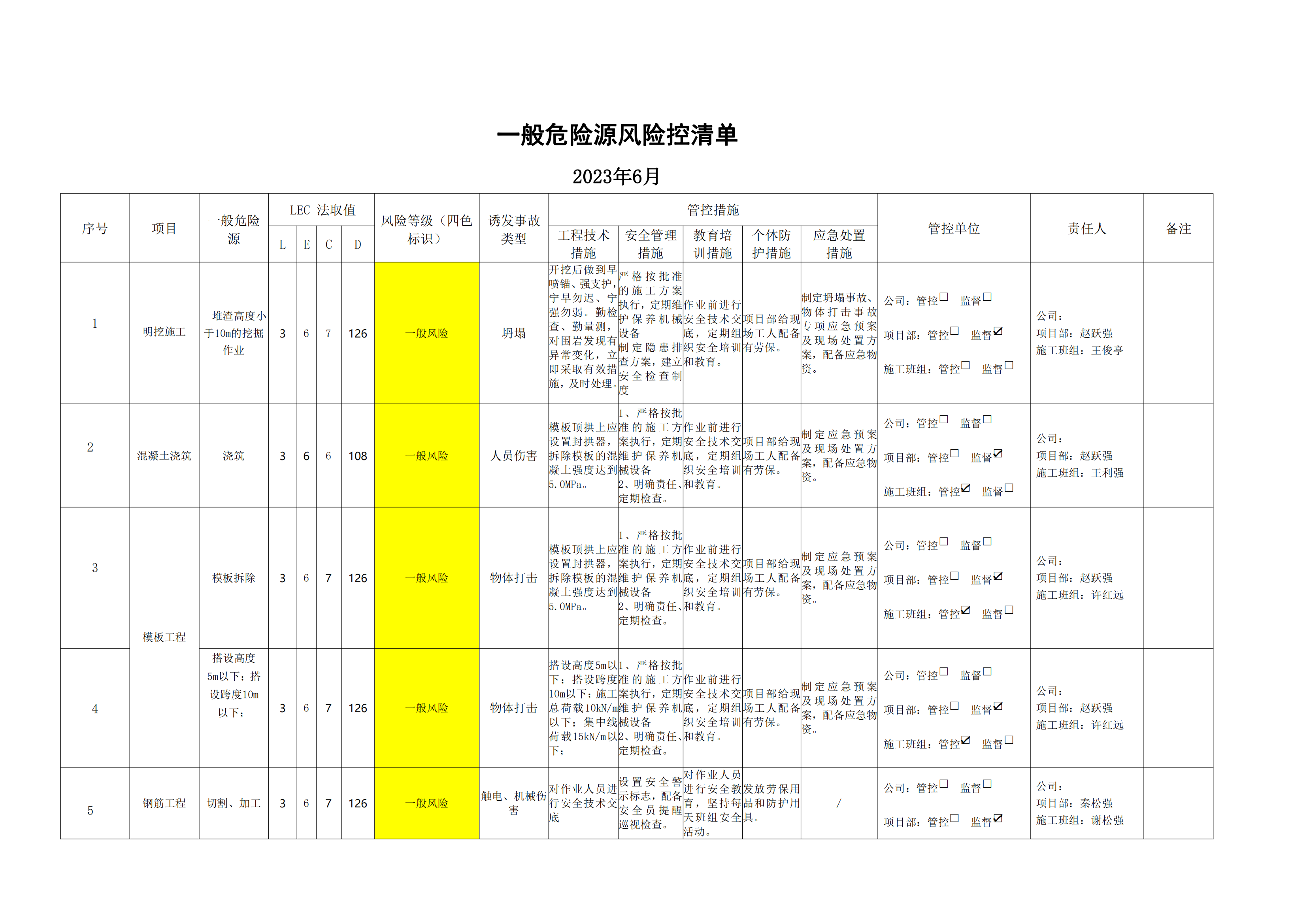 小浪底南岸灌區(qū)7標(biāo)項目危險源風(fēng)險分級管控清單(6月)